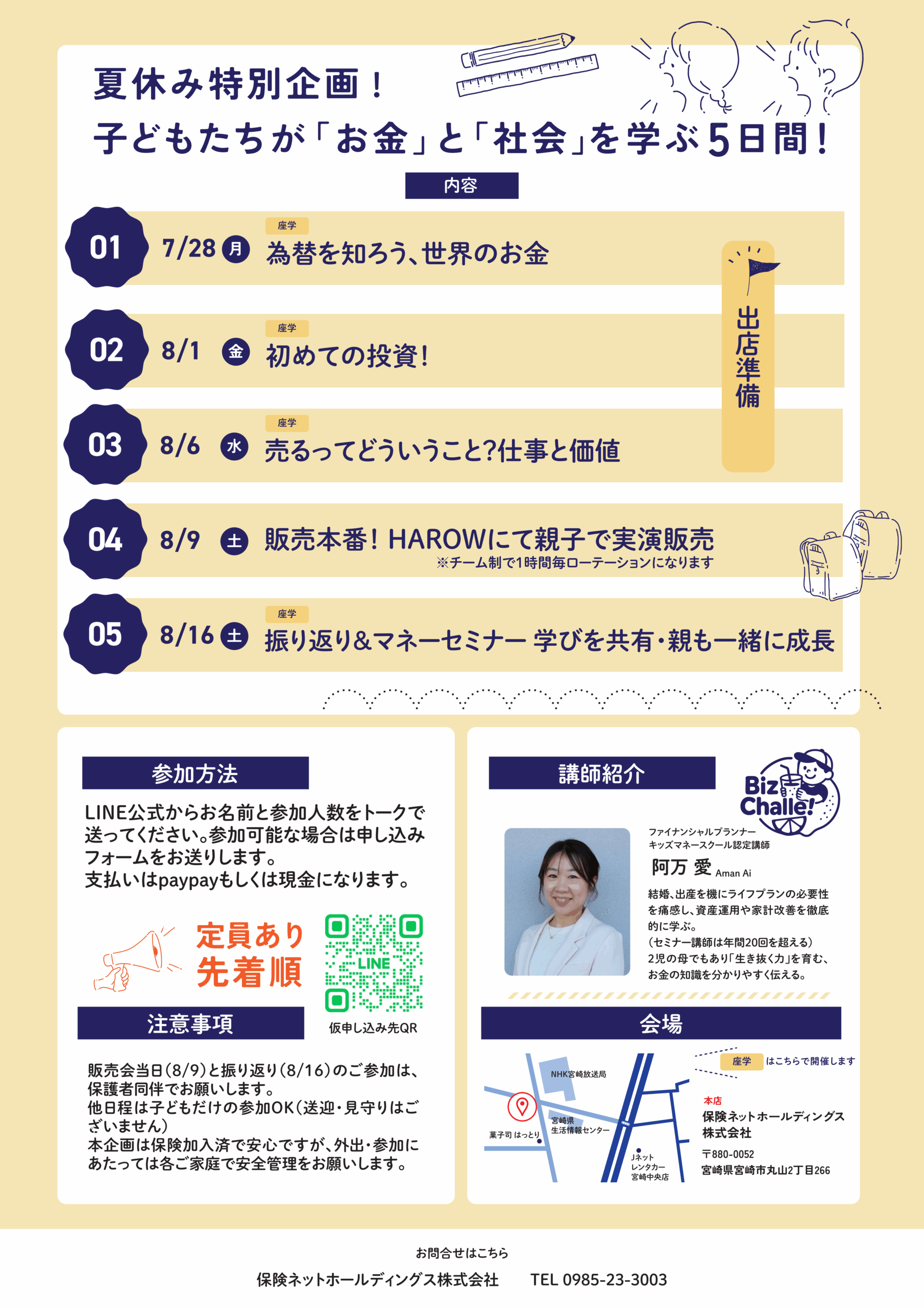 ・親も一緒にマネーリテラシーを高めよう!お小遣いのことも聞ける、無料セミナー付き!夏休み平日の午前中、お子さんを預けて息抜きも