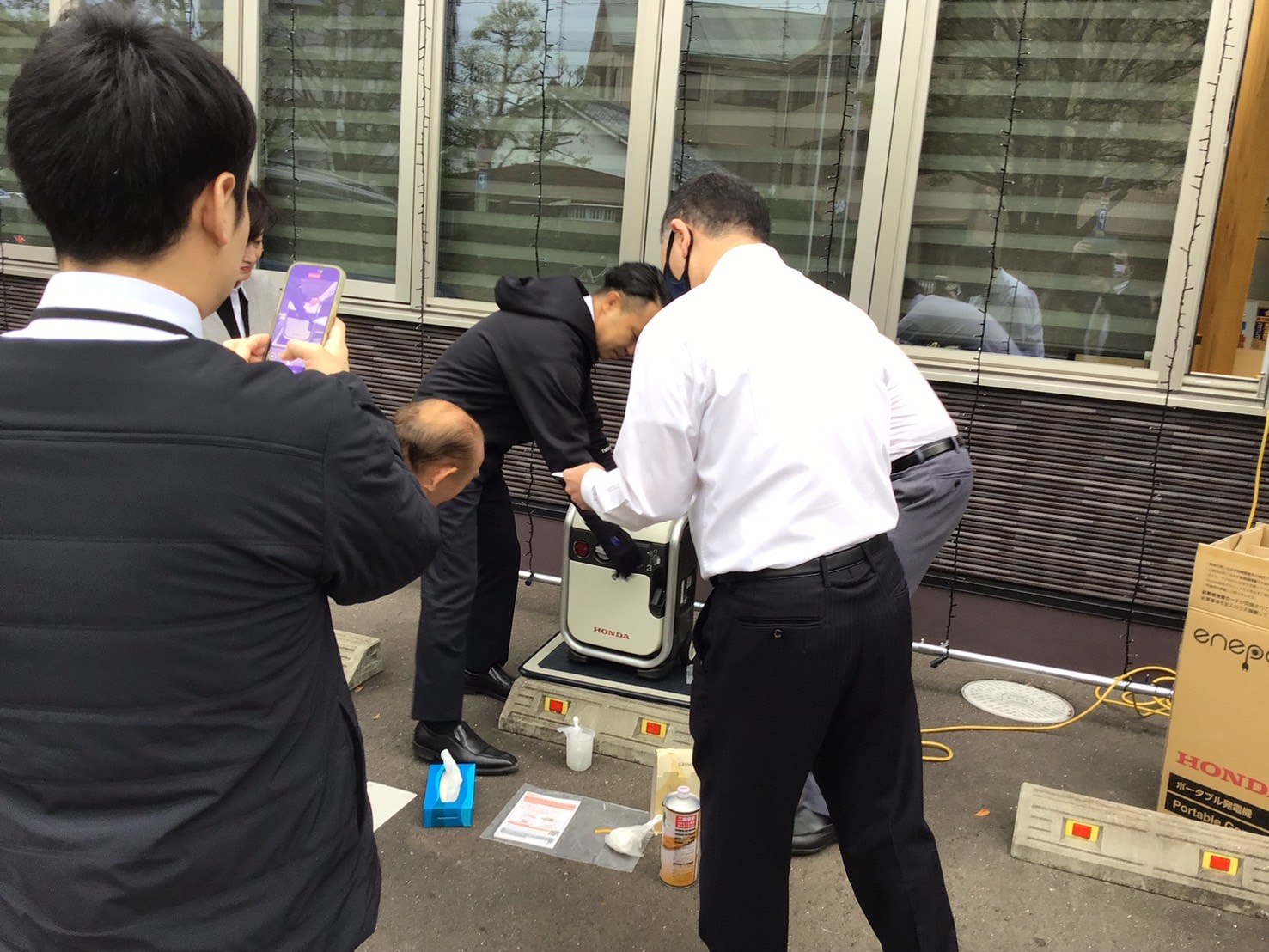 訓練では、社員一人ひとりが発電機の操作方法を確認しながら、電源が入る瞬間には「ちゃんと動いた!」とほっとした表情も見られました。
