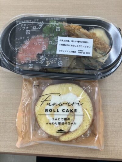 今回はクリスマス会を兼ねてということで、ロールケーキをお届けしました。